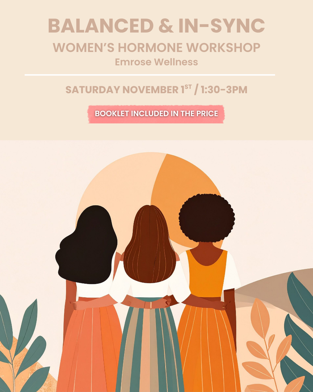 Cet atelier vous donnera les outils pour vous sentir plus épanouie, moins confuse et profondément connectée à la sagesse de votre corps. 🌟 Que vous synchronisiez votre cycle, cherchiez à équilibrer vos hormones ou entriez en périménopause, vous repartirez informée et inspirée, avec des moyens concrets de soutenir votre santé et votre vitalité. 💛 empowered, less confused, and deeply connected to your body’s wisdom. 🌟 Whether you’re cycle syncing, addressing hormonal imbalances, or entering perimenopause, you’ll leave informed and inspired with practical ways to support your health and vitality. 💛